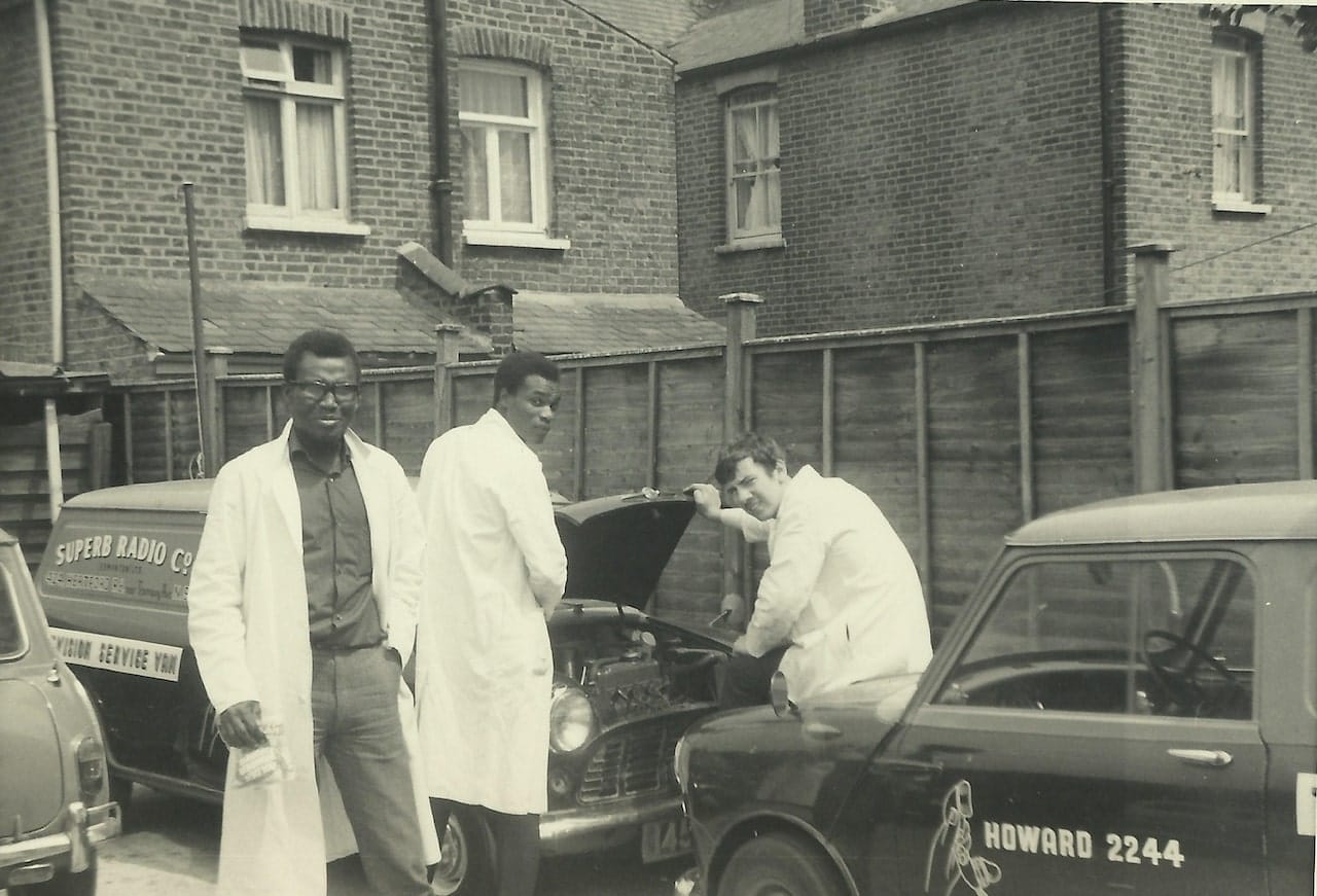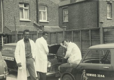 The collection of black and white pictures above are mine, the Green Lanes workshop, the old Superb Radio workshop in Edmonton and the odd one of Arnos Grove showing the salesman (Norman) who`s wife Pat “Tatty” also worked with us.
